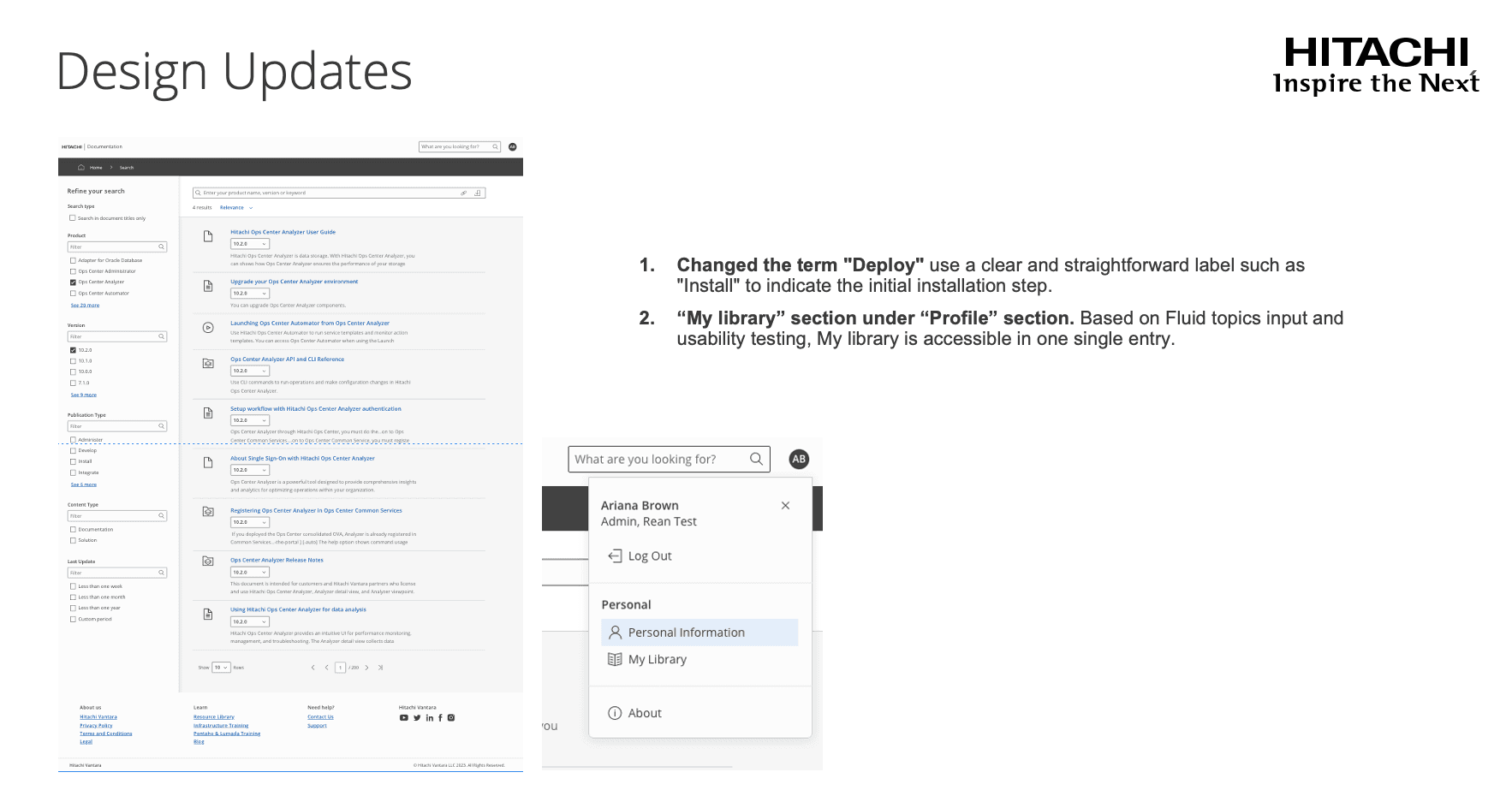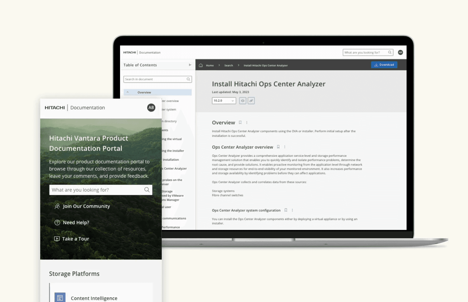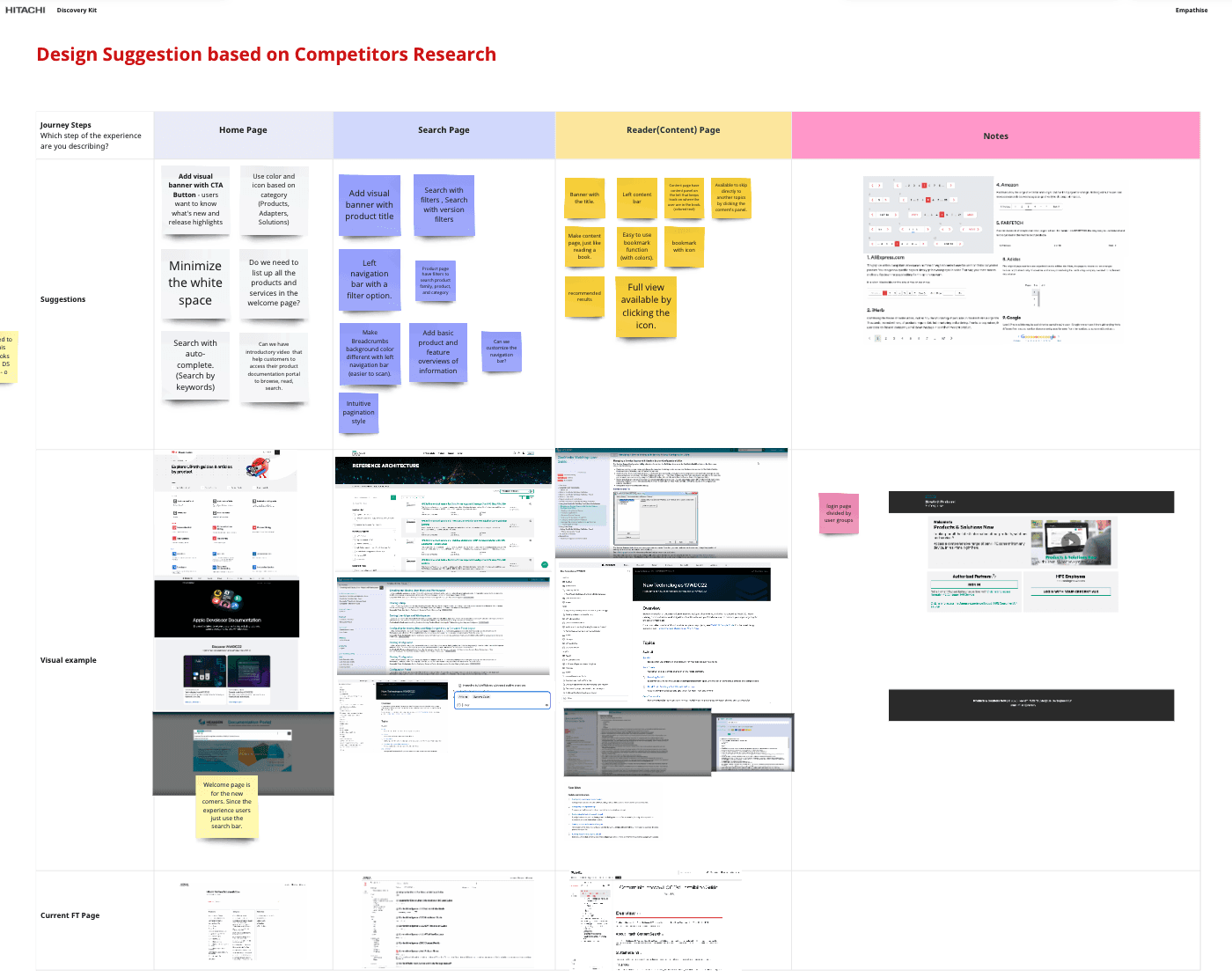 Clients often ask the product design team, "How can we streamline website search and simplify the user journey?" To address this, we aimed to highlight Hitachi Vantara's unique strengths and establish it as a leader in reliable data platforms. Our goal was to launch a clean, user-friendly data documentation portal. Through user research, data insights, and thoughtful critique, we're uncovering needs and solving core challenges that impact millions of people worldwide.