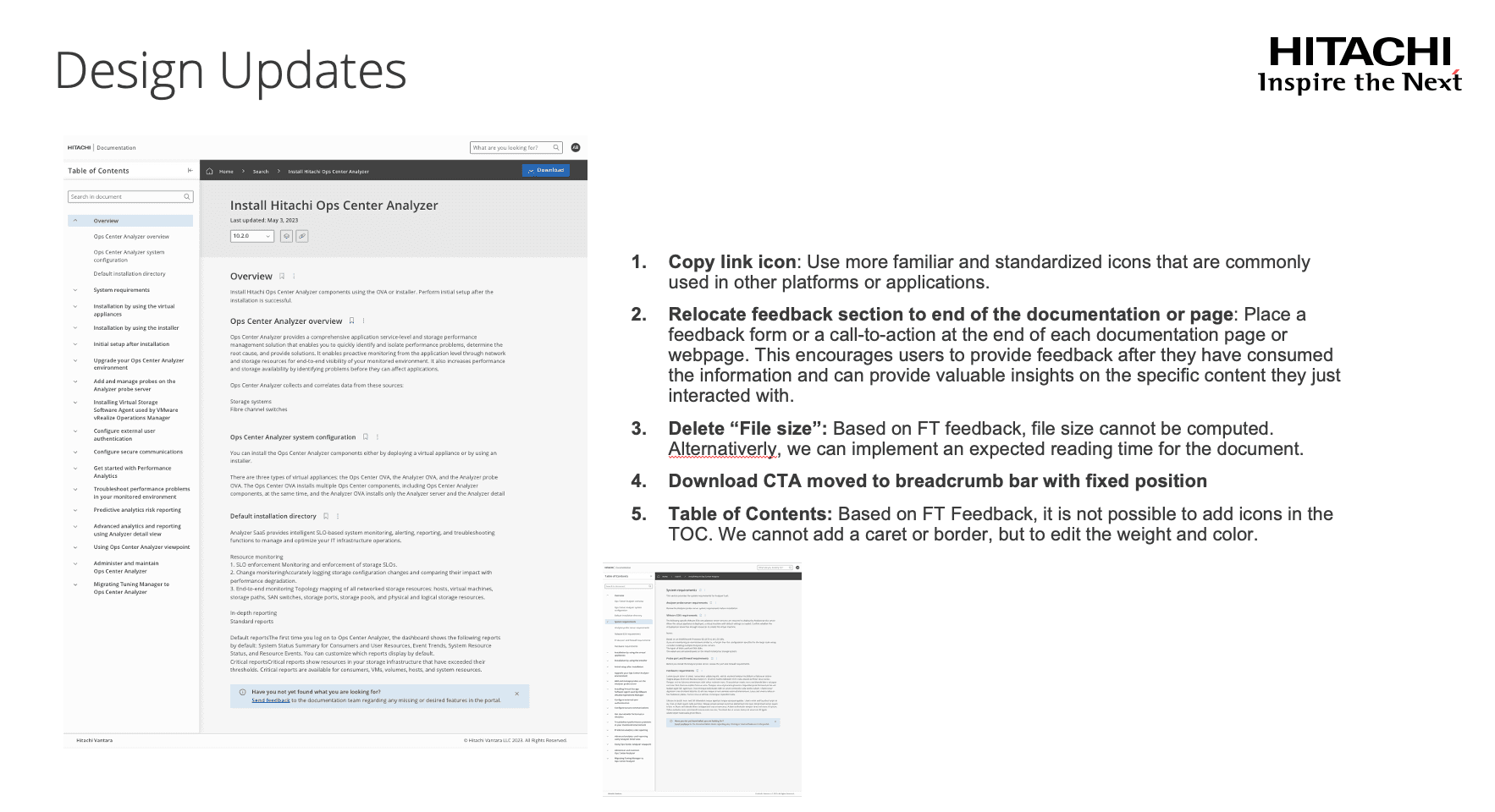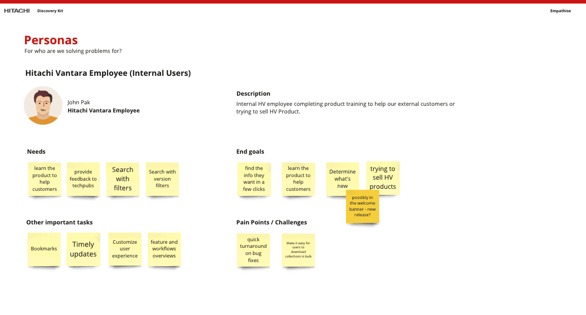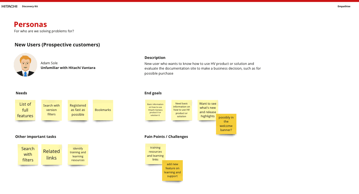 Clients often ask the product design team, "How can we streamline website search and simplify the user journey?" To address this, we aimed to highlight Hitachi Vantara's unique strengths and establish it as a leader in reliable data platforms. Our goal was to launch a clean, user-friendly data documentation portal. Through user research, data insights, and thoughtful critique, we're uncovering needs and solving core challenges that impact millions of people worldwide.