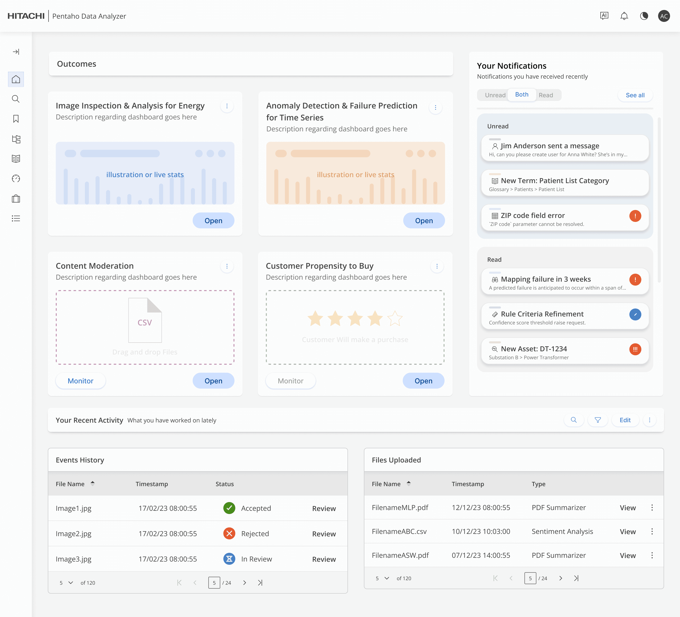 As a lead product designer for Hitachi's data managment platform and Vantara's portals, I focused on data visualization and design thinking methodology to effectively communicate complex data. I collaborated closely with the engineering team to define, develop, and deliver visual designs in a consumer-facing environment. I was responsible for designing the UI and UX, conducting usability testing, and performing UX reviews. I primarily collaborated with Project Manager Kunju and Data Design Team Manager Petr Vlk. I developed frameworks and prototypes to communicate the new design vision, which facilitated decision-making within our team.