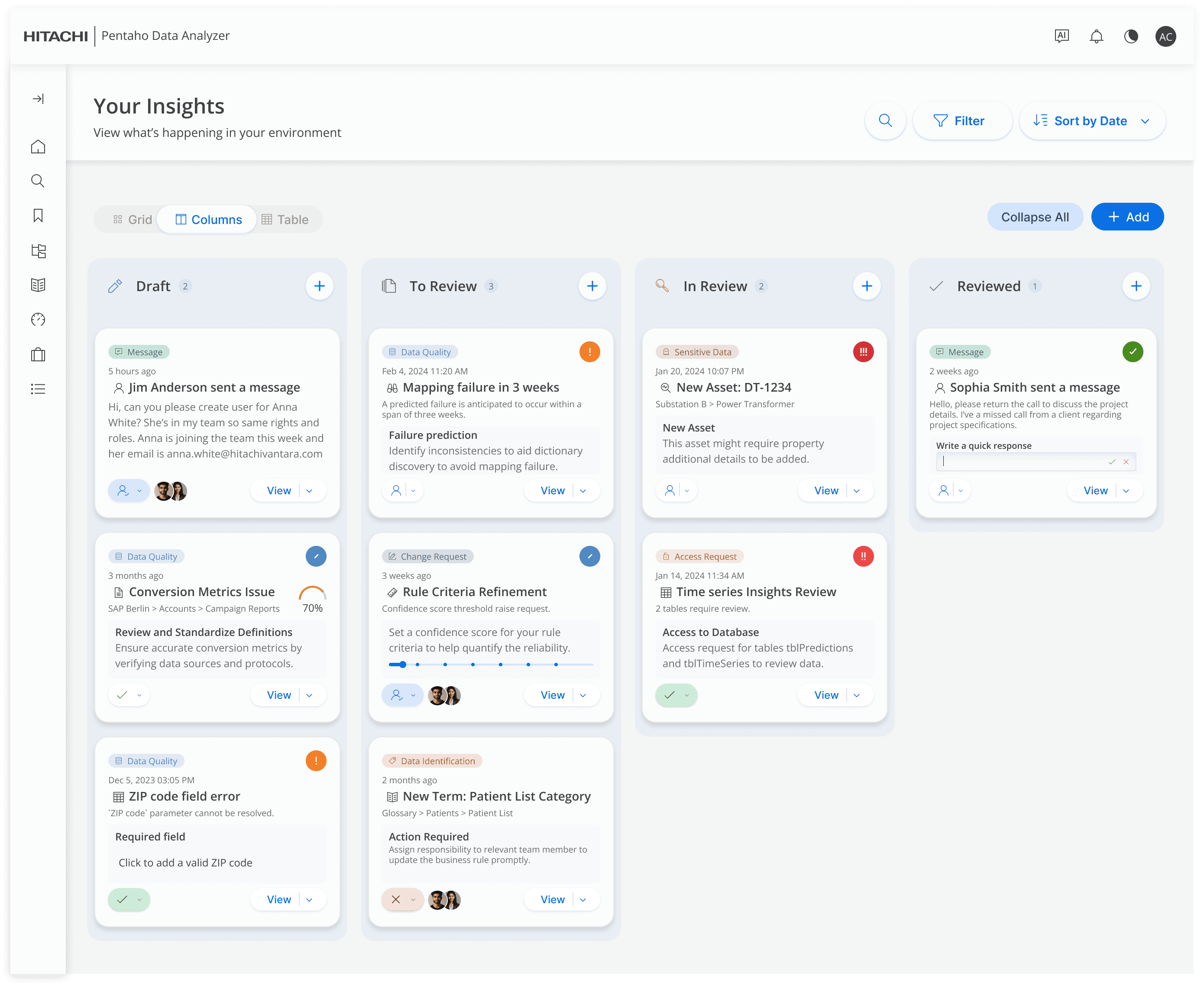 Follow your data through each stage—Draft, In Review, and Received. This progressive approach helps users easily see its current status and take action, providing clarity on what’s happening in their environment.