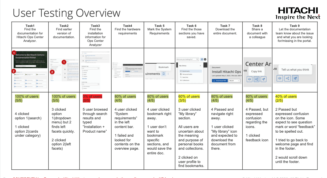 Our target audience includes external visitors (clients and prospects) and internal Hitachi Vantara employees. We invited potential users to usability testing, sharing the current prototype and assigning specific tasks.