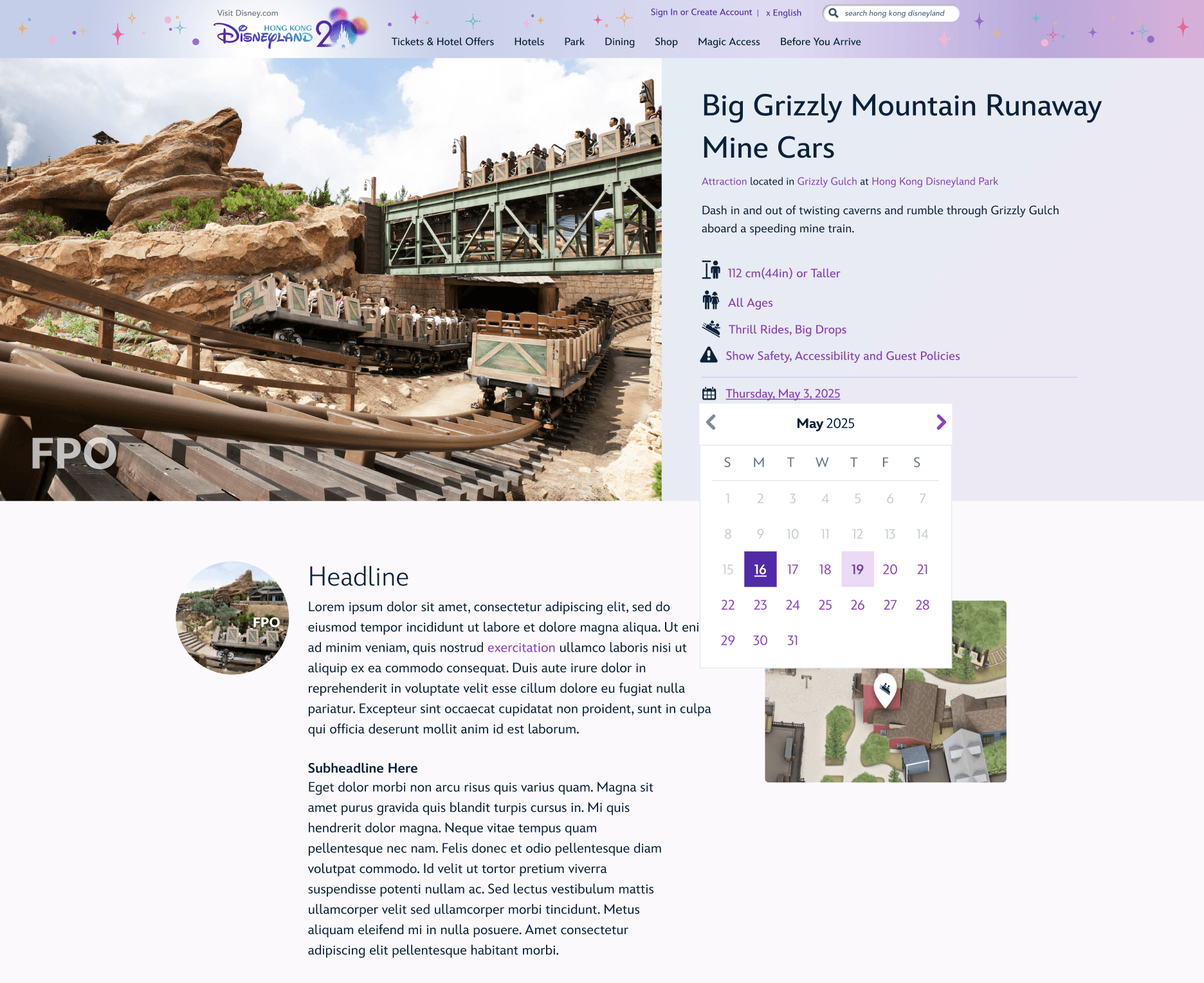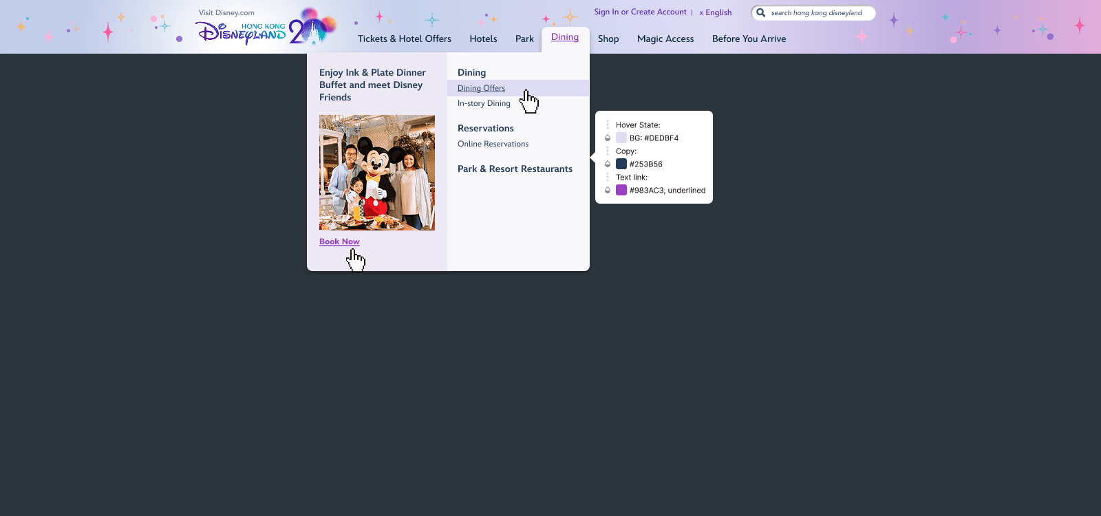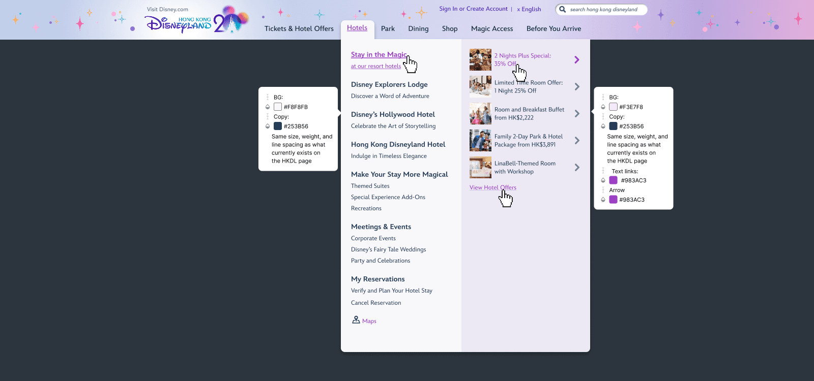 Designing the HKDL 20th Anniversary website and app experience—a dedicated destination where guests can easily discover and stay informed about all anniversary events and experiences. The design incorporated a simplified color palette inspired by the 20th anniversary, while aligning closely with brand and design guidelines.